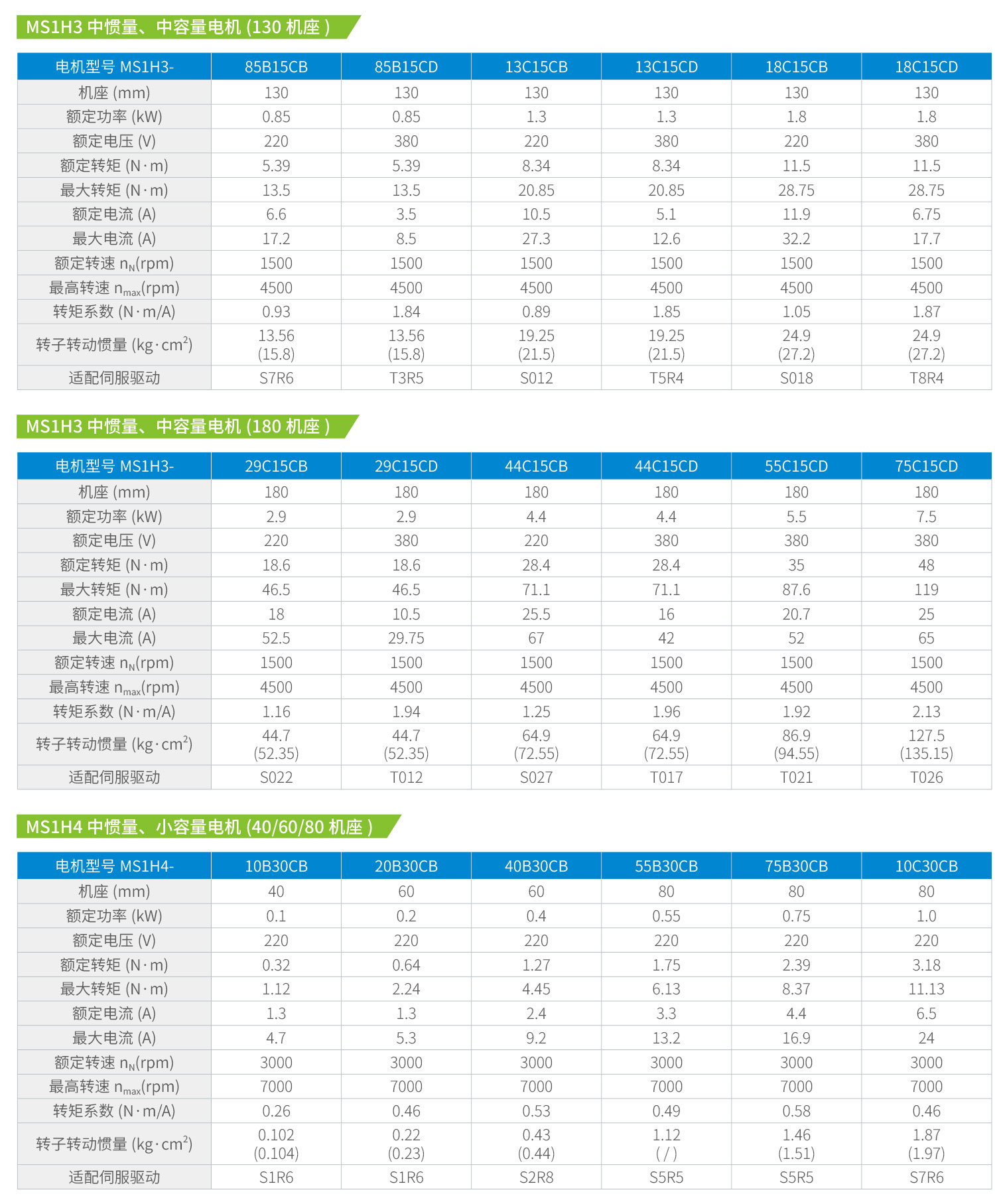 100、130、180 機座增加220V 電壓電機。